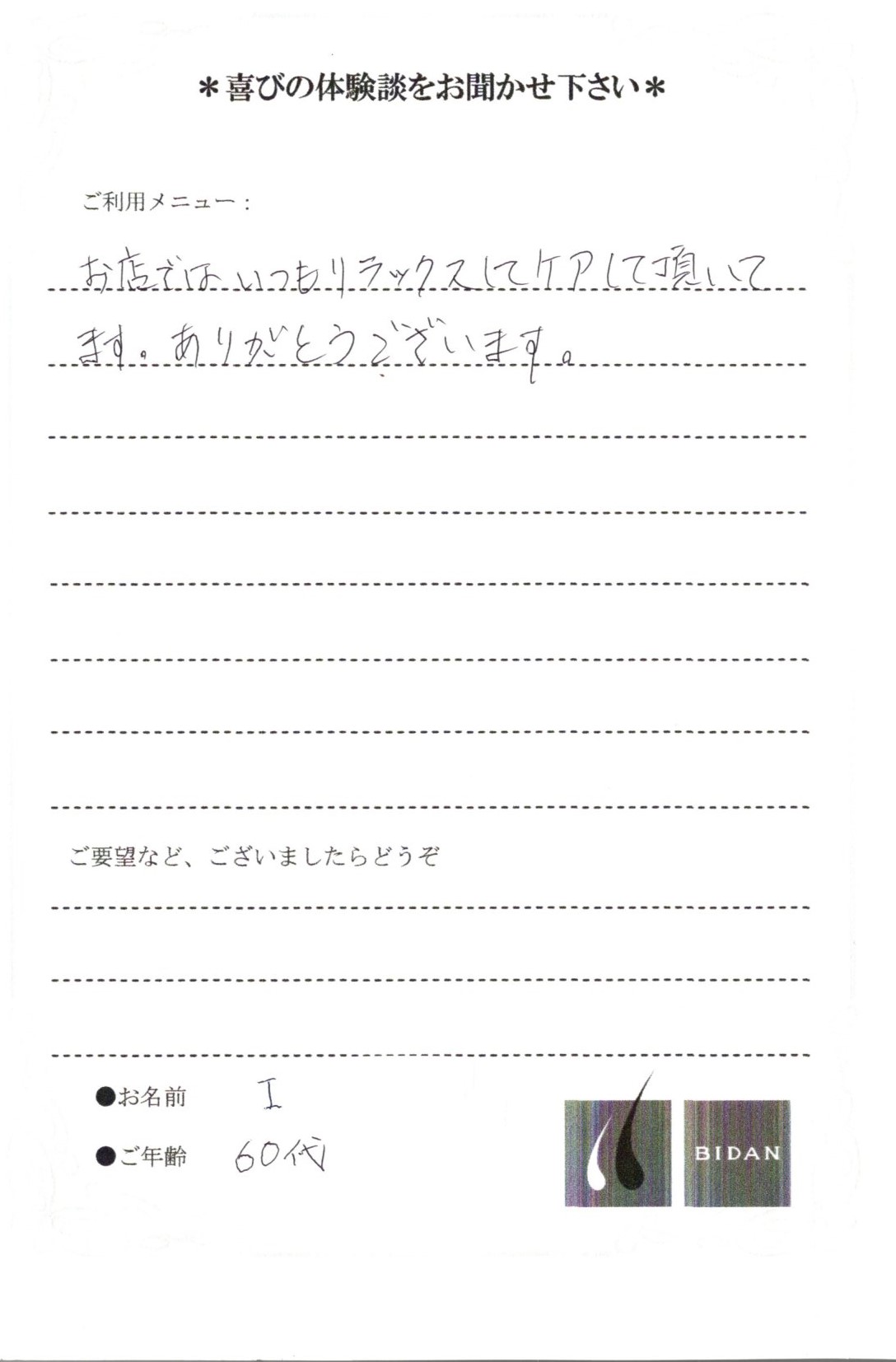 お客様の声(I様・60代)