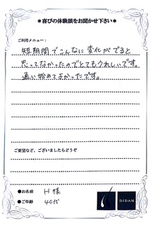 続いてH様からの嬉しいお声のご紹介です