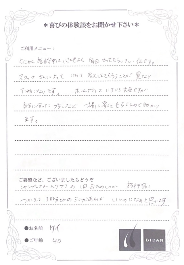 ご自身に合ったお通い方やホームケアを今後もしっかりご提案させていただきますね!