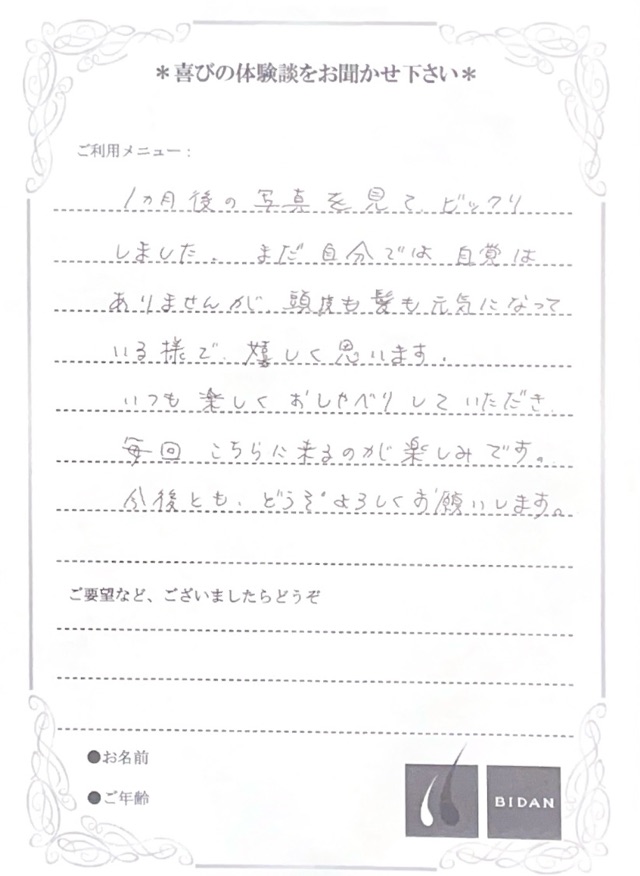お通いいただいているお客様より、お喜びのお声をいただきましたのでご紹介させていただきます。
