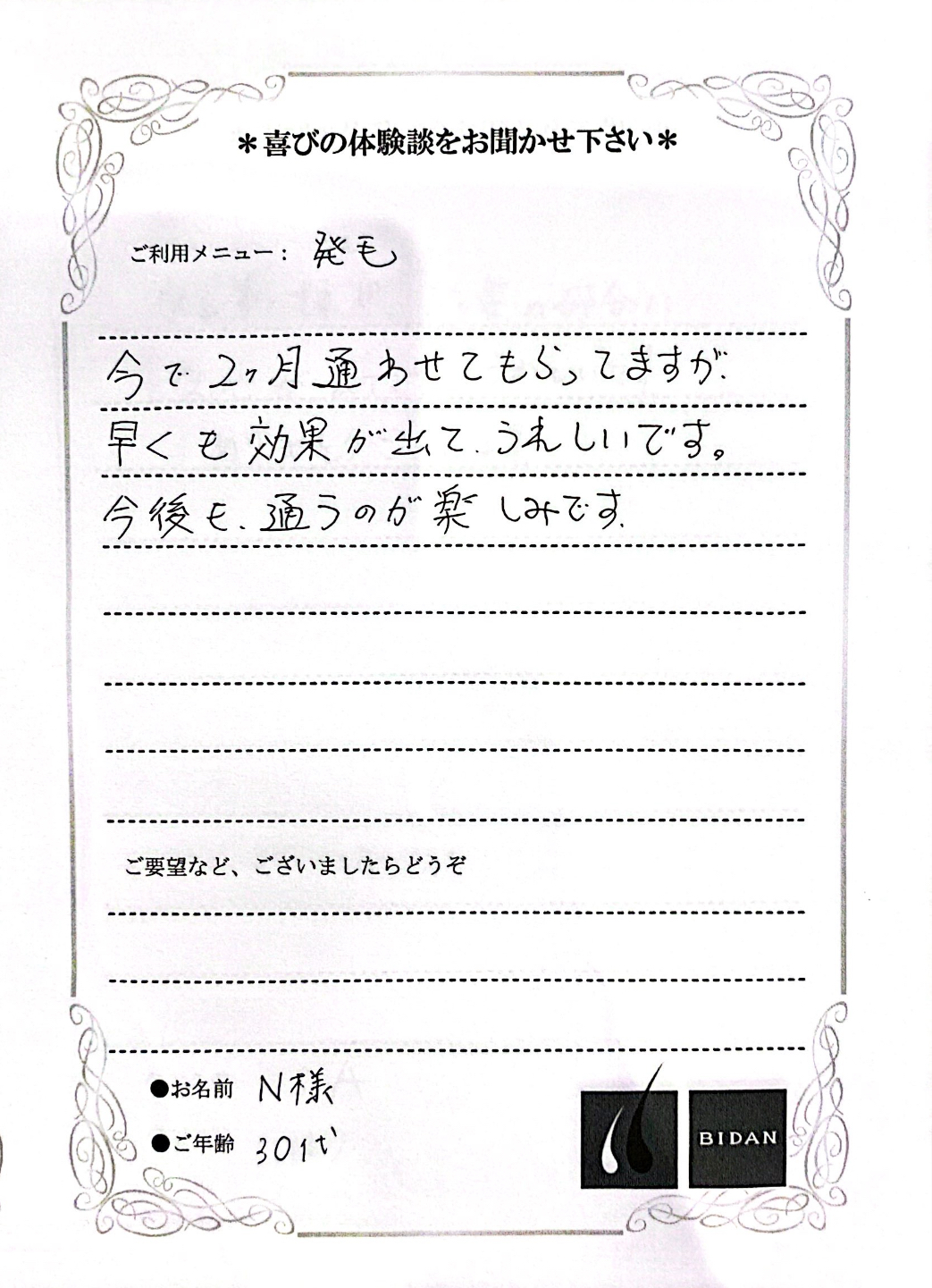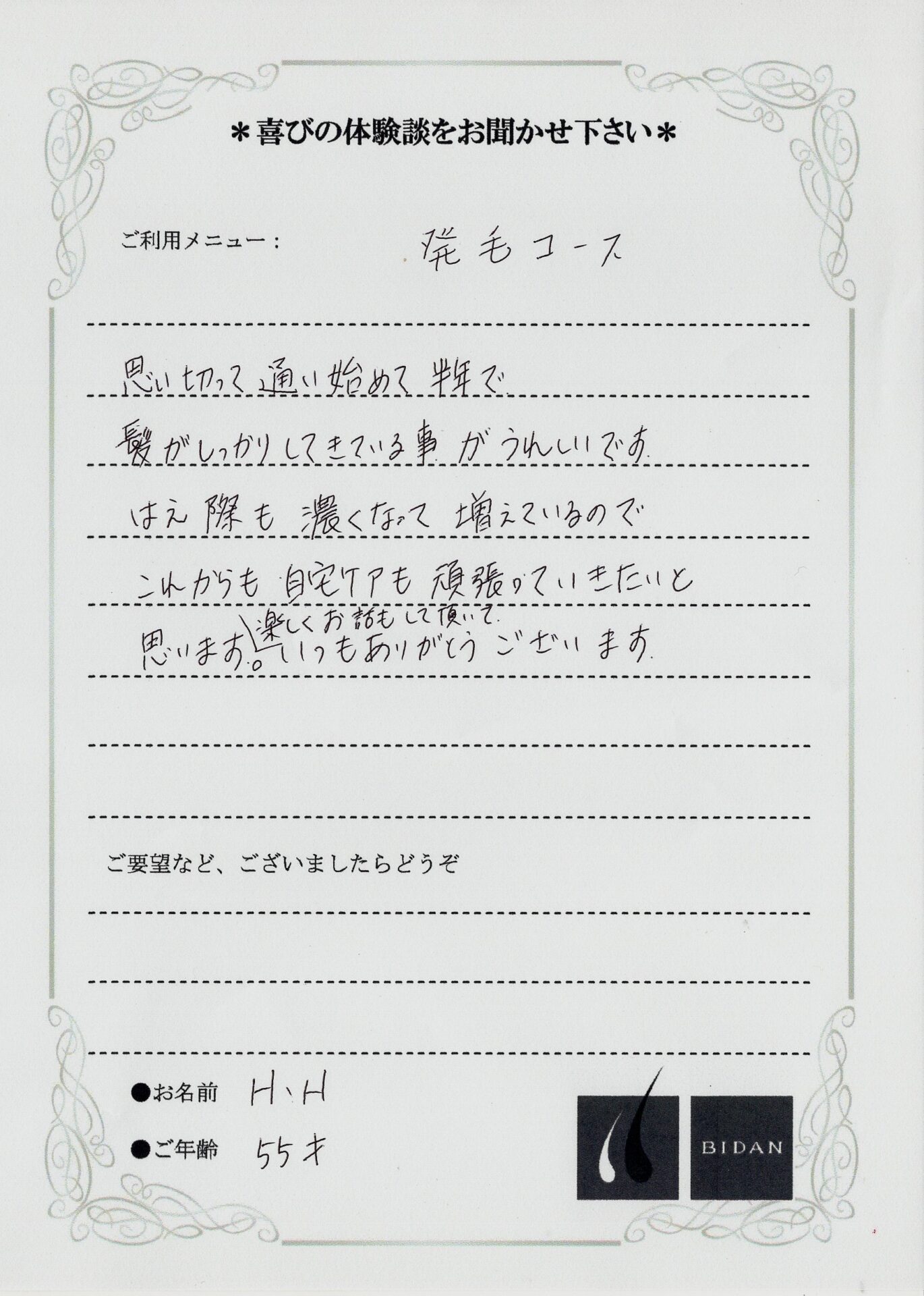ご自宅でのケアも頑張って下さっており、生え際もしっかりとした毛になり