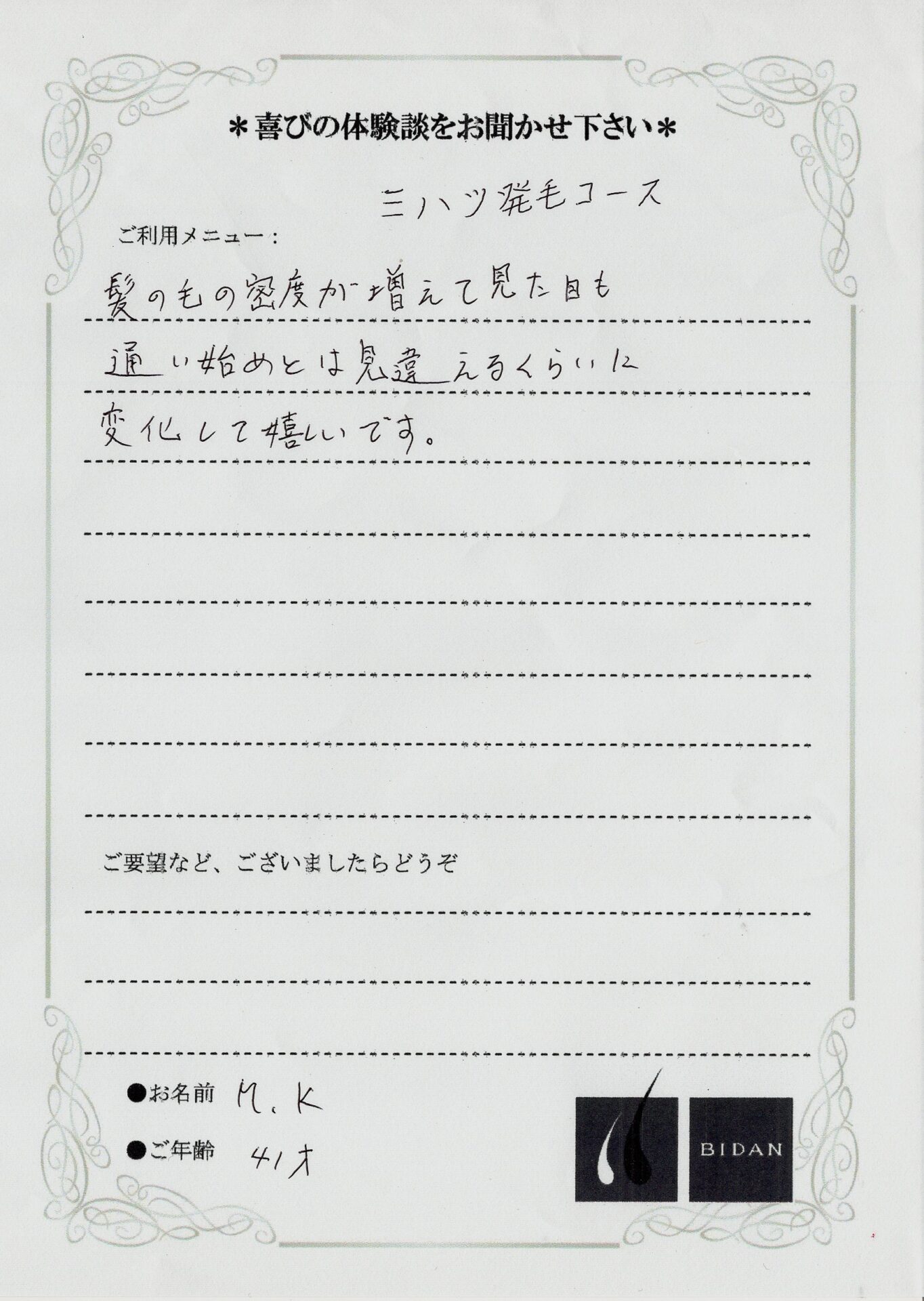 ★お喜びの声★『髪の毛の密度が増えて見た目も