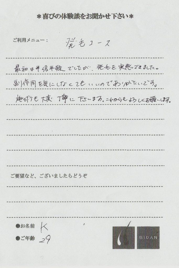 お客様より喜びの声を頂きましたのでご紹介させて頂きます。
